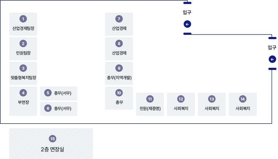 | 3 | 맞춤형복지팀장 | 290-3611 |